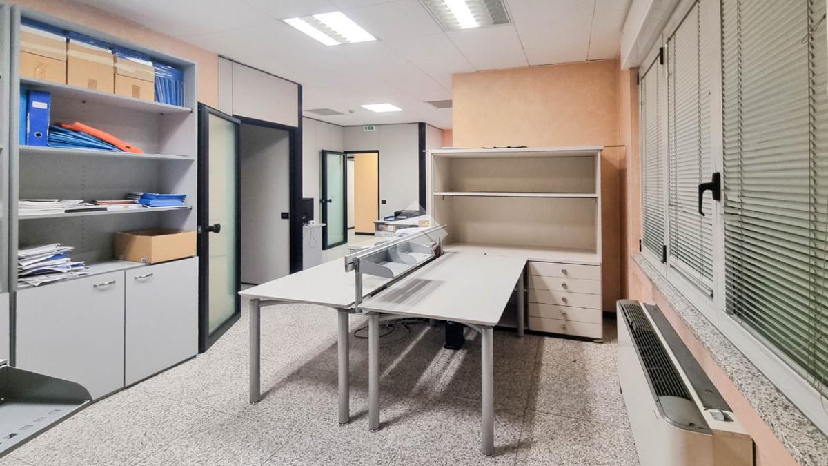 Gli uffici disposti al piano primo misurano ciascuno circa 90 metri quadrati. Entrambi sono suddivisi in quattro stanze e due bagni non a norma disabili. Gli uffici hanno un’altezza di circa 3,00 metri e presentano l’impianto di riscaldamento e condizionamento autonomo, l’impianto elettrico, l’impianto d’illuminazione e l’impianto dall’allarme. L’ufficio posto sulla sinistra dello stabile presenta la porta blindata.