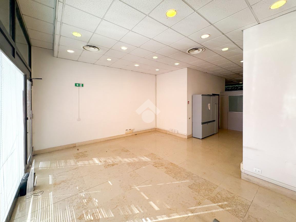 Il negozio misura 140 metri quadrati e ha un'altezza di 3,90 metri. La soluzione divisa in due locali ed è dotata di un servizio igienico a norma disabili. L'ambiente risulta particolarmente luminoso grazie a tre grandi vetrine. Il locale possiede l'impianto di riscaldamento e quello di condizionamento, l'impianto elettrico e quello di illuminazione. L'immobile, completamente controsoffittato, gode di doppio ingresso e di una posizione ad angolo.