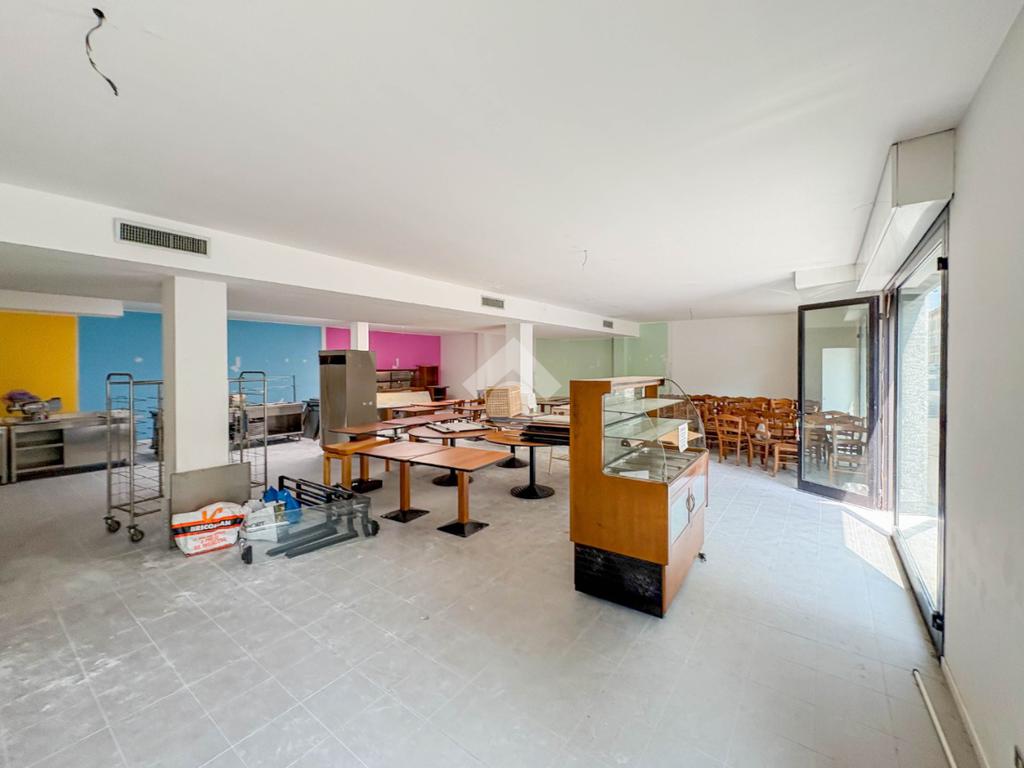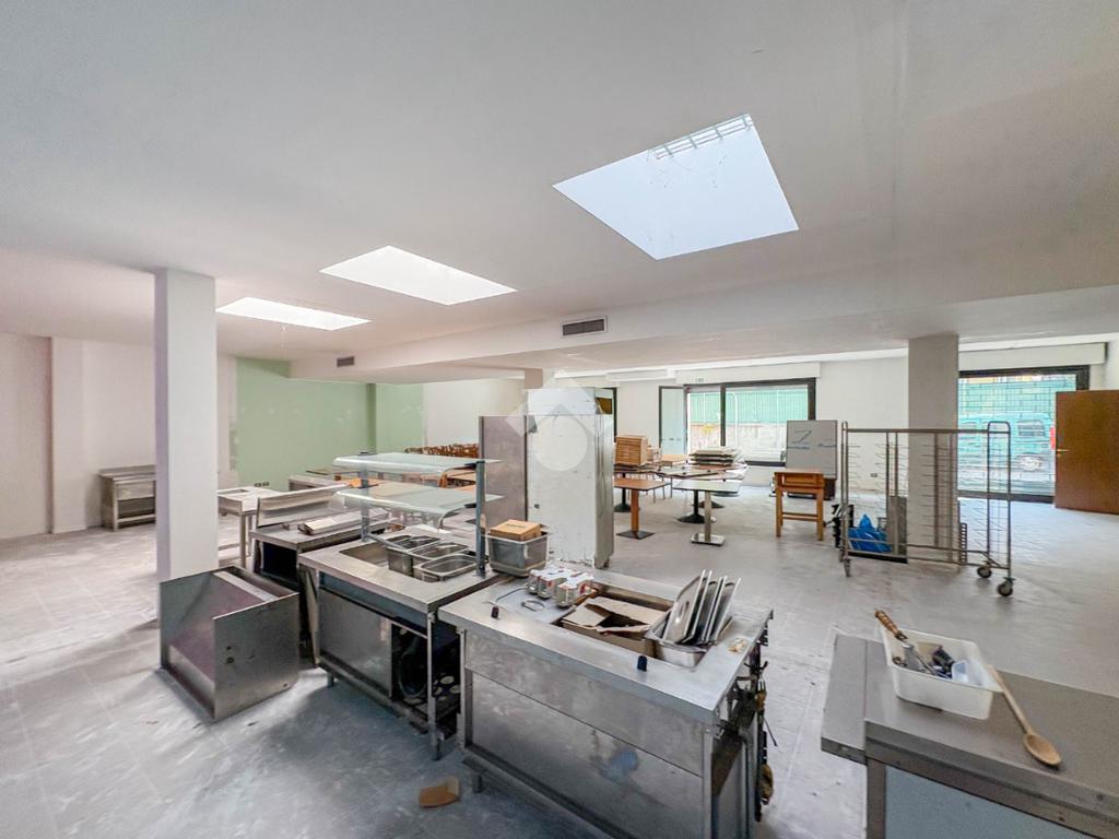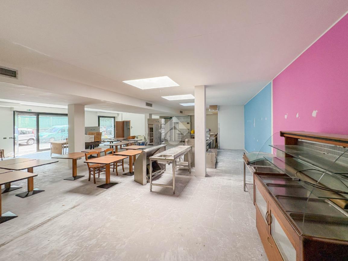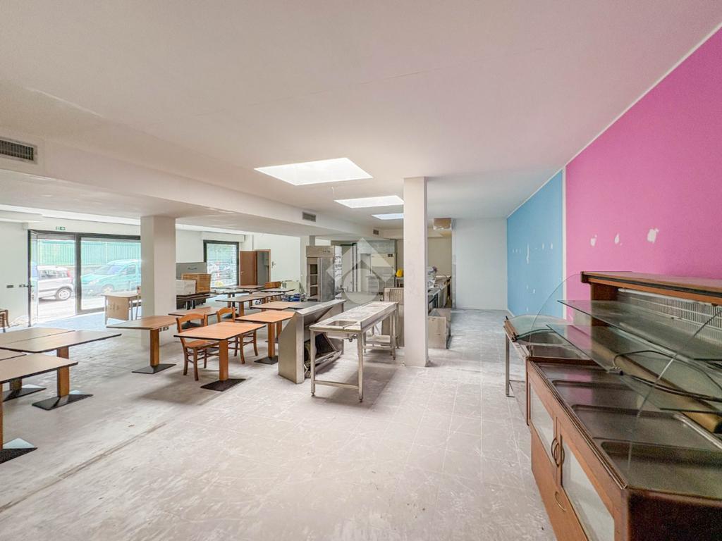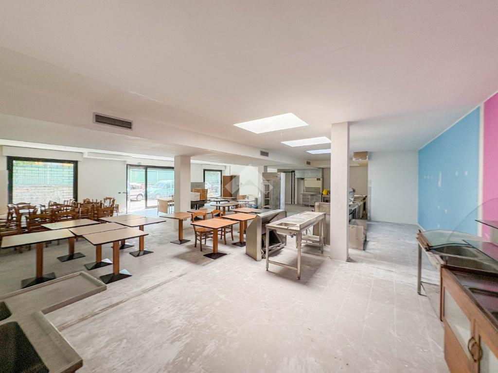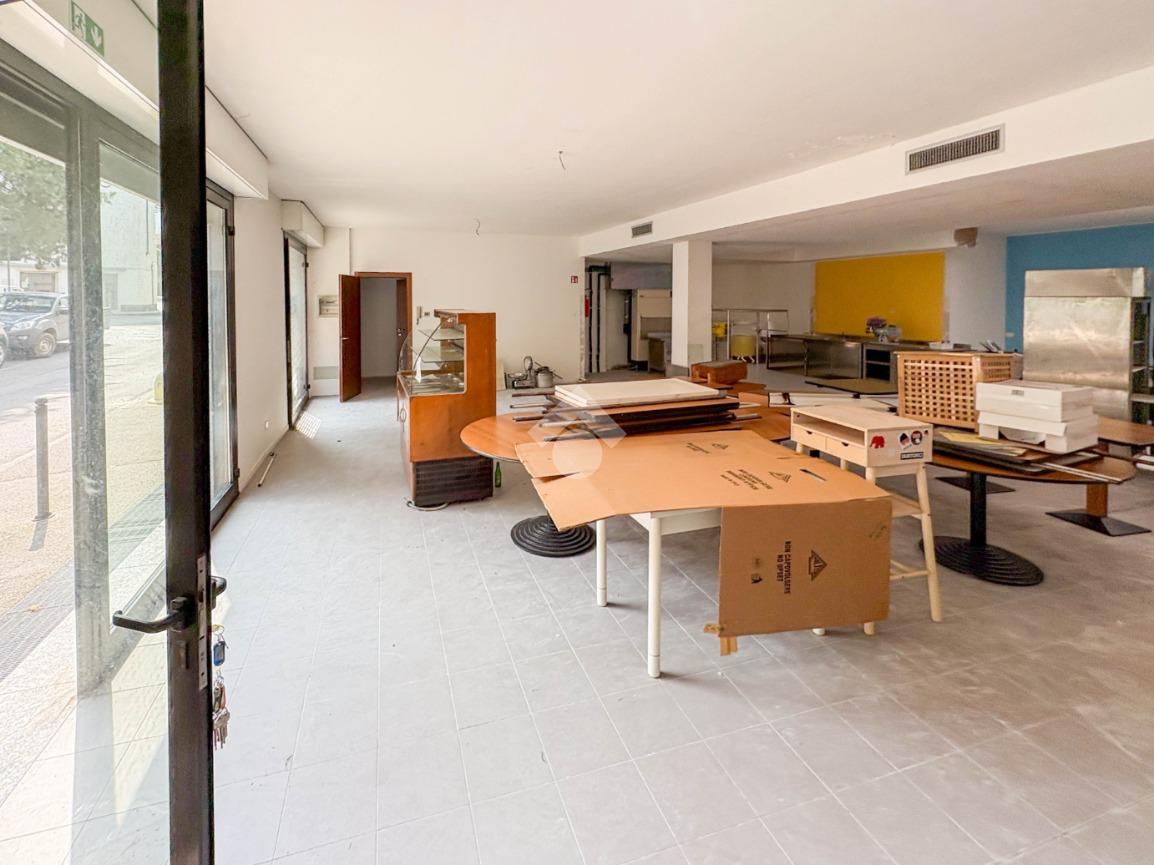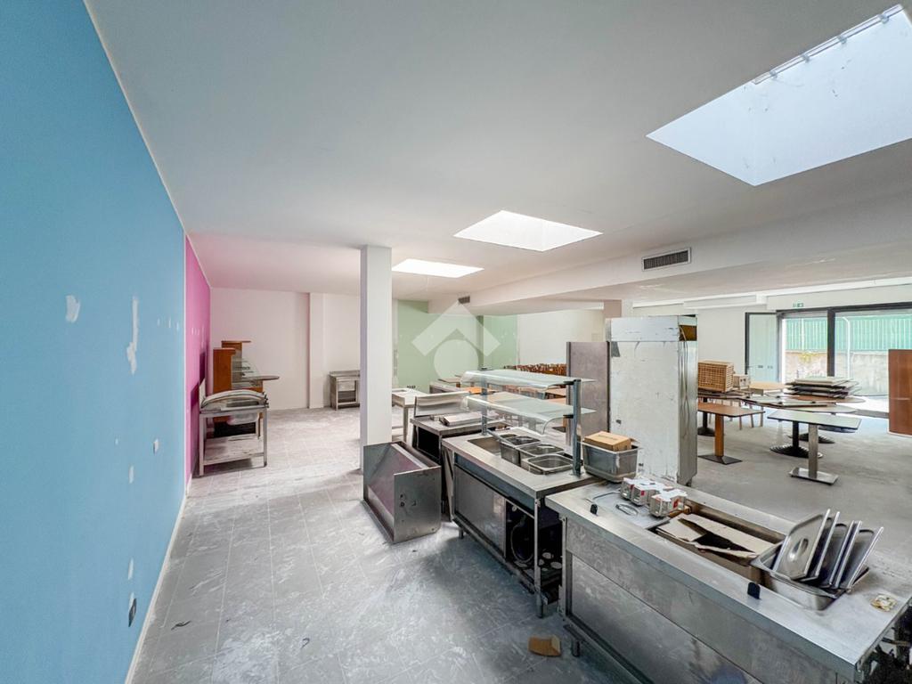 La soluzione misura circa 220 metri quadrati, è composta da due locali al piano terra e presenta un servizio igienico non a norma disabili. La struttura è controsoffittata, ha un'altezza di circa 3,00 metri, è caratterizzata da una pavimentazione con piastrelle e risulta molto luminosa grazie alla presenza di tre ampie vetrine. L'immobile presenta l'impianto di riscaldamento e di condizionamento autonomi, l'impianto elettrico e d’illuminazione. Il negozio è cablato, e dispone di luci di emergenza, canna fumaria e saracinesca automatica.