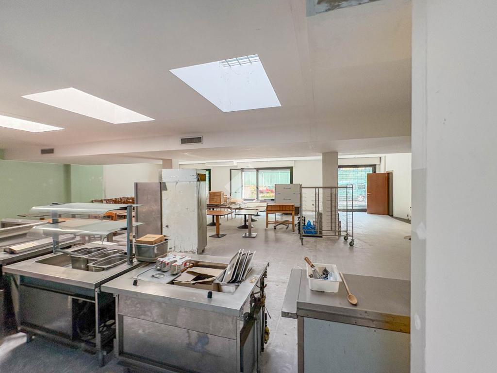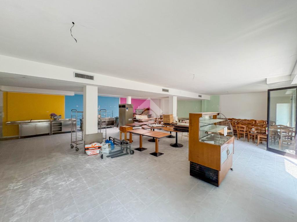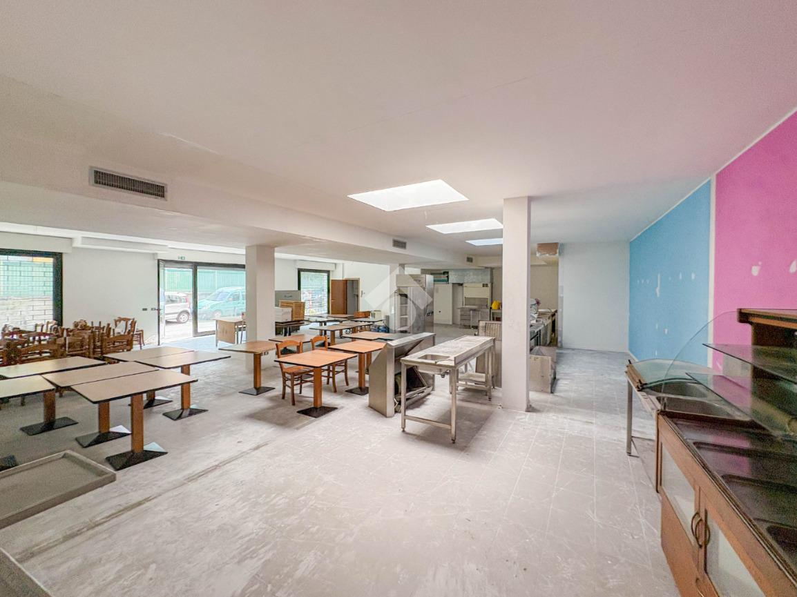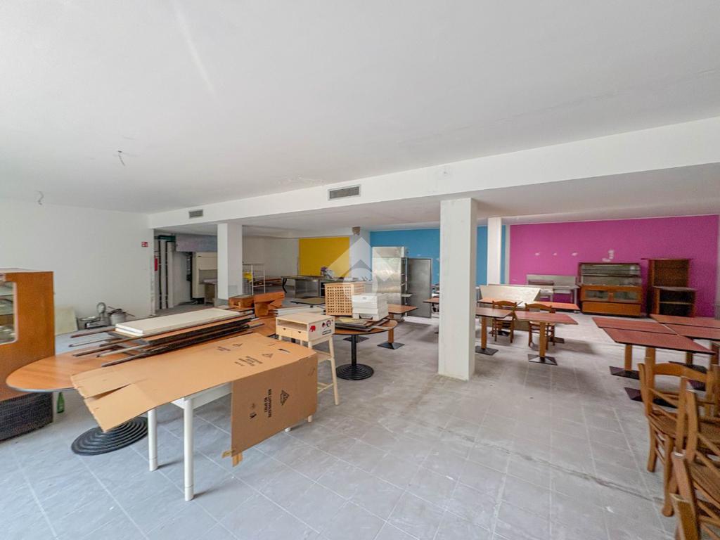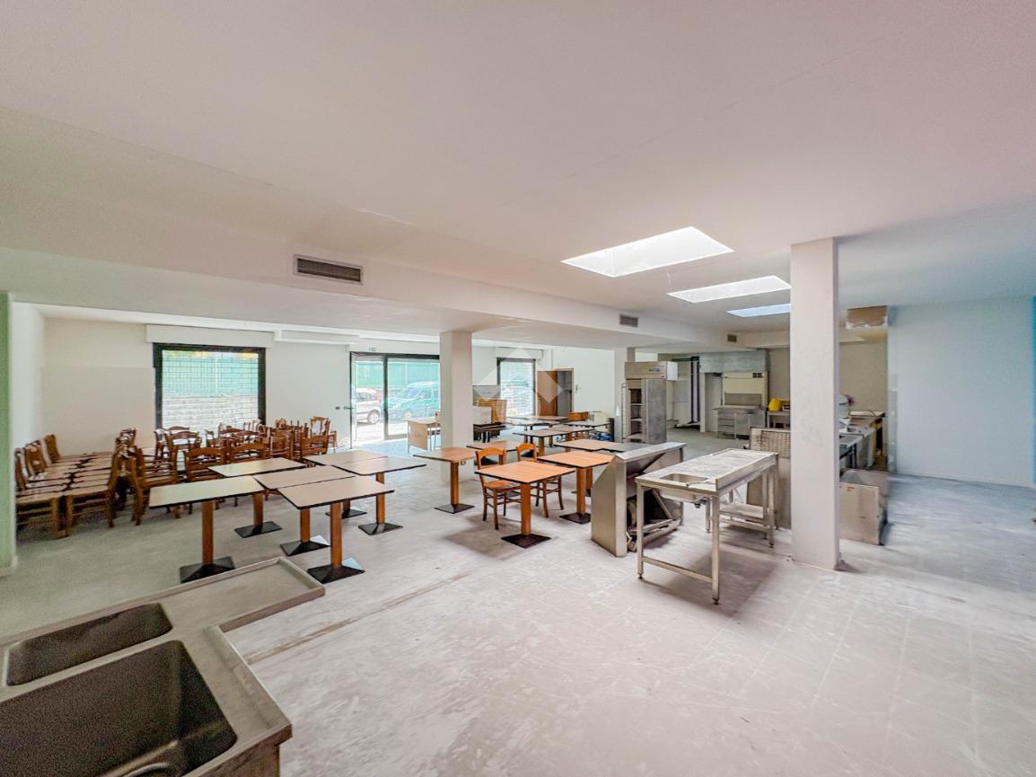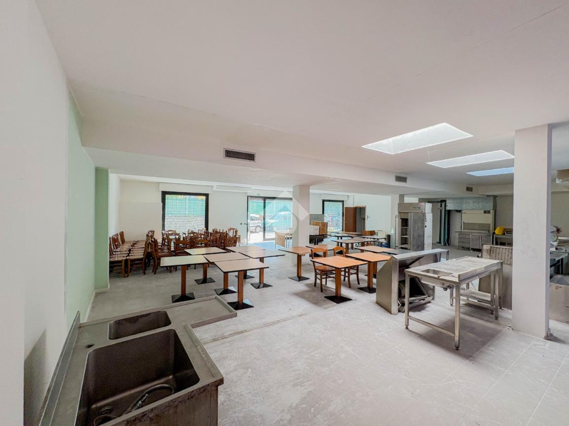 La soluzione misura circa 220 metri quadrati, è composta da due locali al piano terra e presenta un servizio igienico non a norma disabili. La struttura è controsoffittata, ha un'altezza di circa 3,00 metri, è caratterizzata da una pavimentazione con piastrelle e risulta molto luminosa grazie alla presenza di tre ampie vetrine. L'immobile presenta l'impianto di riscaldamento e di condizionamento autonomi, l'impianto elettrico e d’illuminazione. Il negozio è cablato, e dispone di luci di emergenza, canna fumaria e saracinesca automatica.
