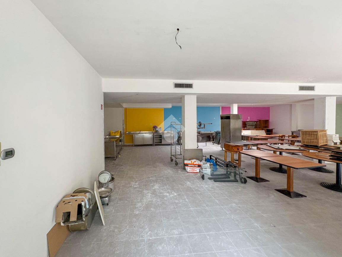 Proponiamo in locazione un negozio con superficie complessiva di circa 220 metri quadrati disposti in due locali al piano terra di una struttura condominiale di tre livelli.