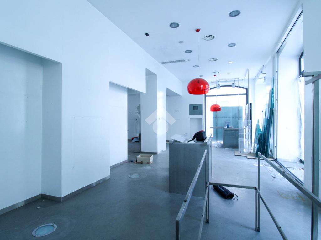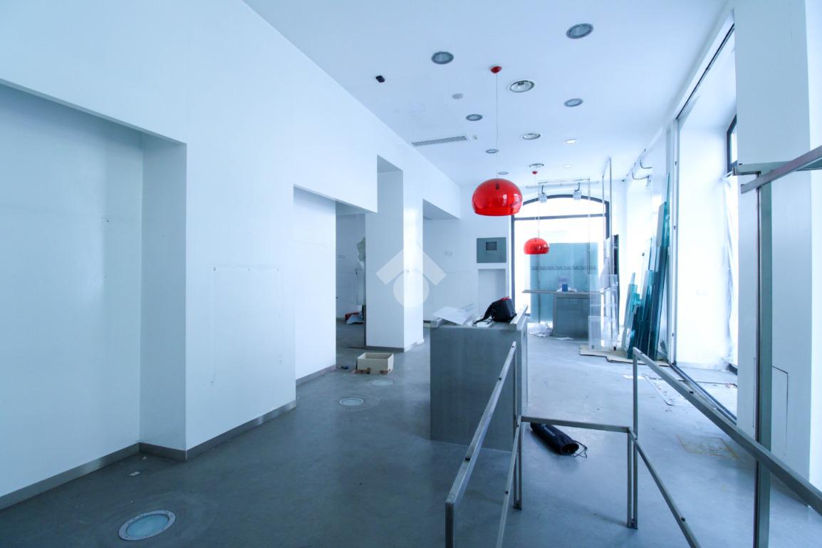 La soluzione misura circa 210 metri quadrati, è composta da un unico locale al piano terra e presenta un servizio igienico non a norma disabili. La struttura è controsoffittata, ha un'altezza di circa 3,50 metri, è caratterizzata da una pavimentazione con piastrelle e risulta molto luminosa grazie alla presenza di otto ampie vetrine. L'immobile presenta l'impianto di riscaldamento e di condizionamento autonomi, l'impianto elettrico e d’illuminazione. Il negozio è cablato ed è dotato di luci e uscite di emergenza