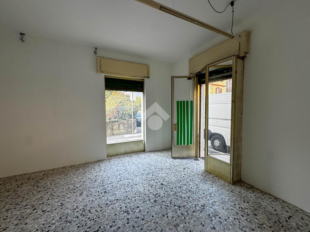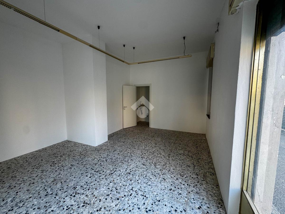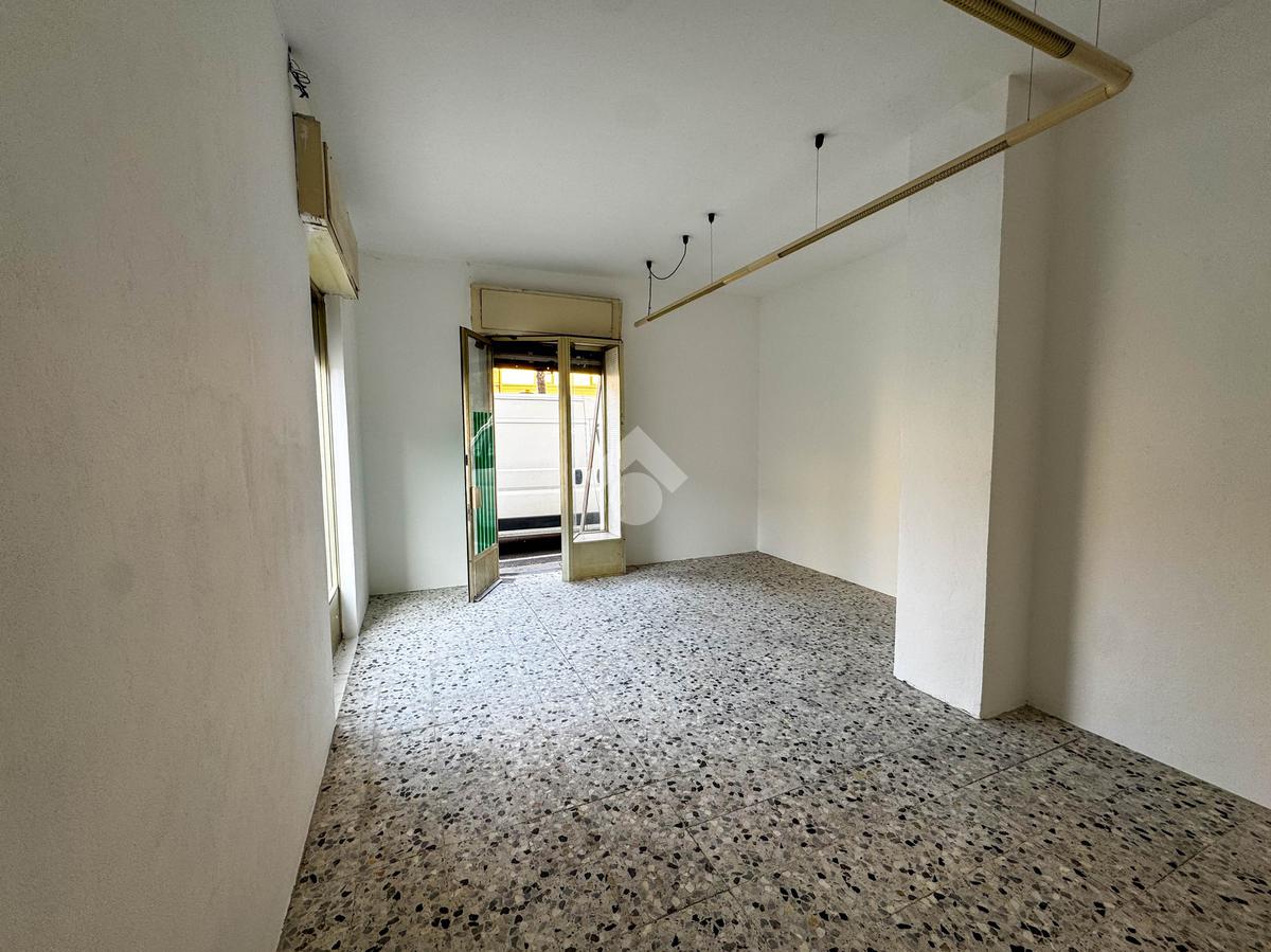 La soluzione misura circa 45 metri quadrati, attualmente si presenta come un unico locale e dispone di un servizio igienico non a norma disabili. La struttura ha un'altezza di circa 3,40 metri, risulta molto luminosa grazie alla presenza di due ampie vetrine ed è caratterizzata da una pavimentazione con piastrelle. L'immobile è cablato e presenta l'impianto elettrico e d'illuminazione. È presente la saracinesca manuale.