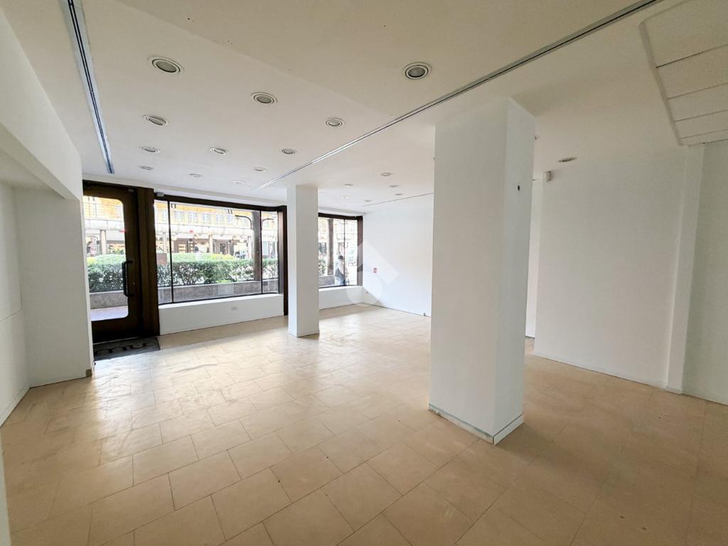 Proponiamo in locazione un negozio con superficie di 100 metri quadrati, situato al piano terra di una struttura di quattro livelli.
