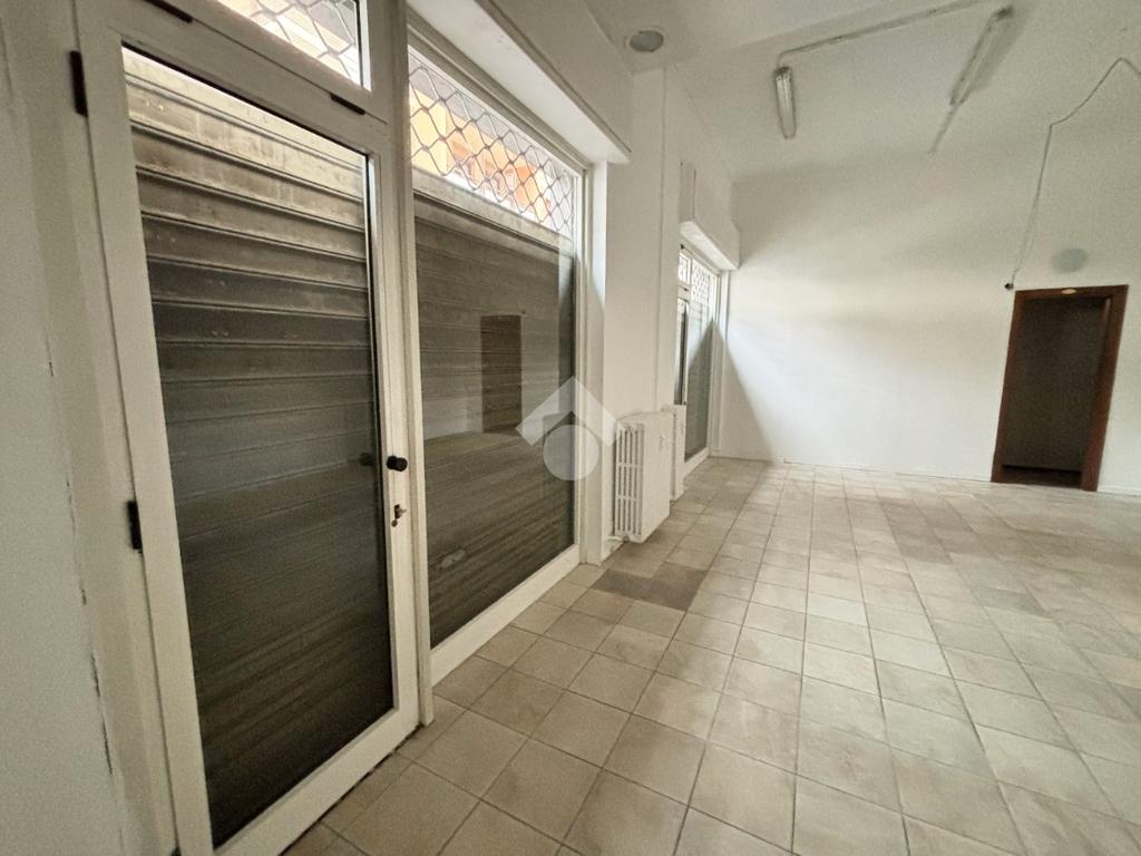 Proponiamo in locazione un negozio con superficie di 85 metri quadrati, situato al piano terra di una struttura condominiale di cinque livelli.