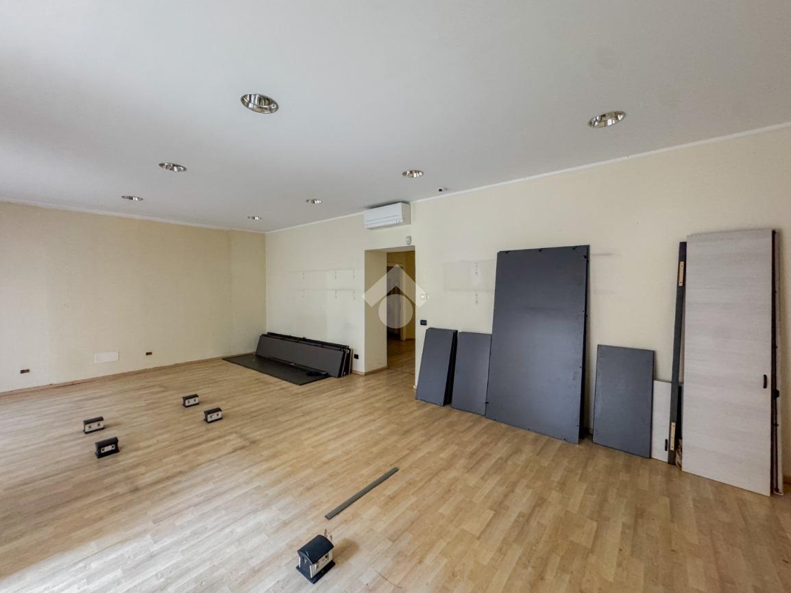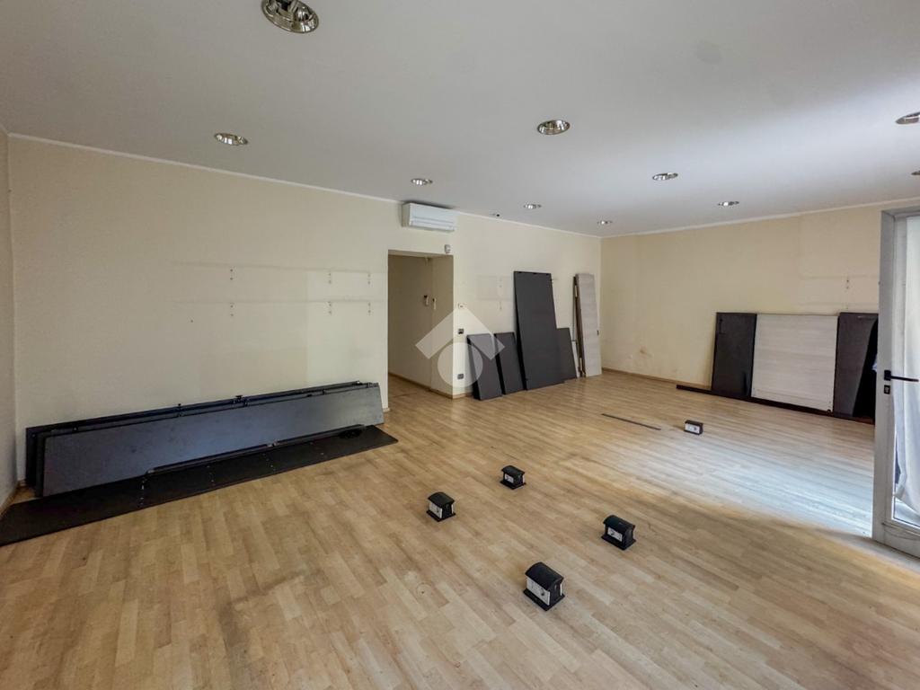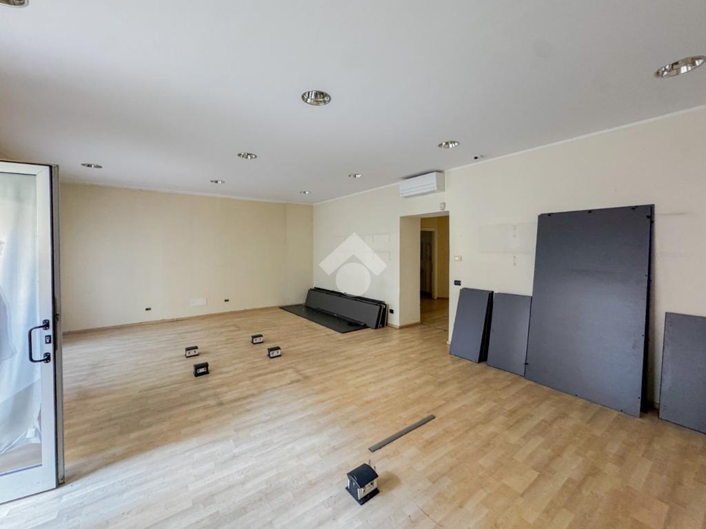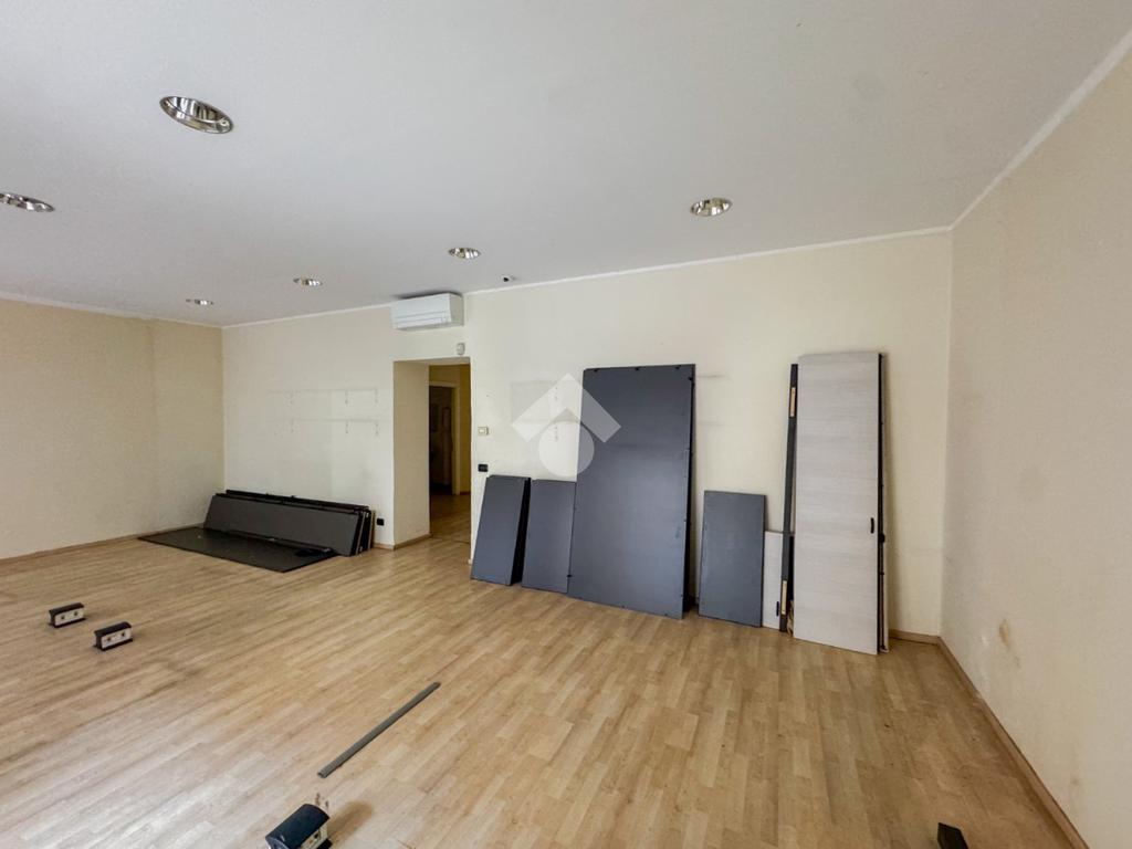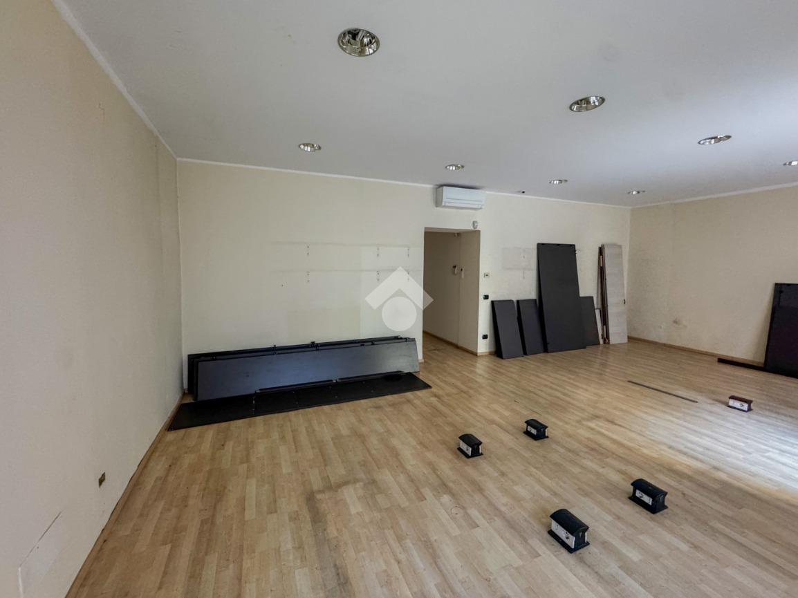 Il negozio misura circa 110 metri quadrati e ha un'altezza di 2,70 metri. La struttura è attualmente divisa in tre locali, dispone di due servizi igienici privati ed è caratterizzata da una pavimentazione in laminato. La soluzione è servita dall'impianto di riscaldamento e condizionamento, dall'impianto elettrico e quello di illuminazione. L'ambiente risulta ben illuminato grazie alla presenza di due ampie vetrine. L'immobile è munito del sistema di allarme e delle luci di emergenza. Inoltre, presenta saracinesca manuale ed è cablato.
