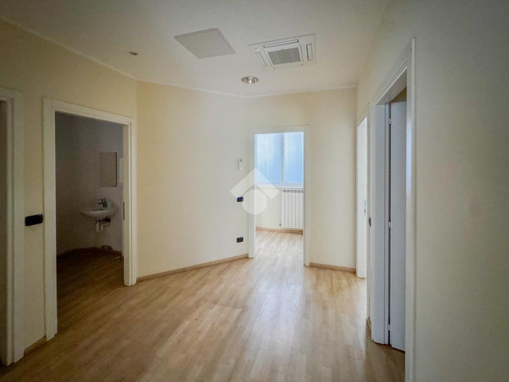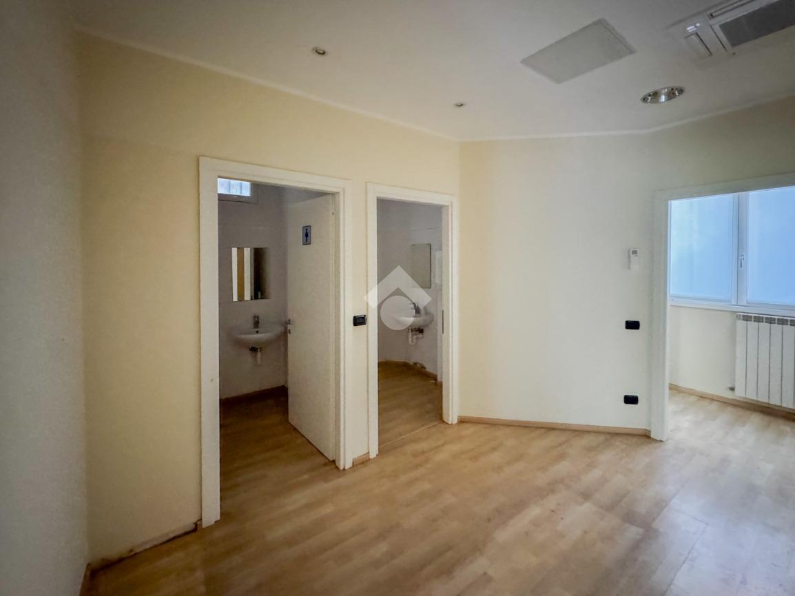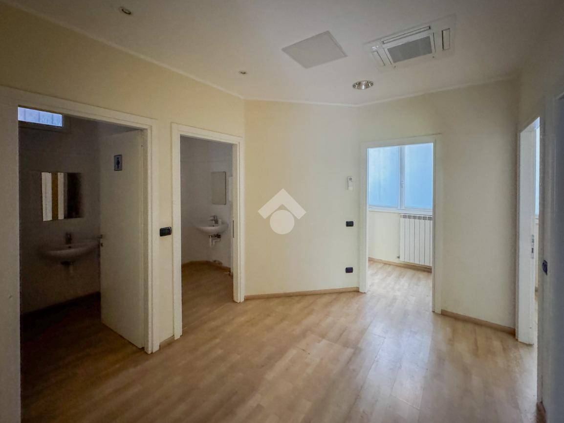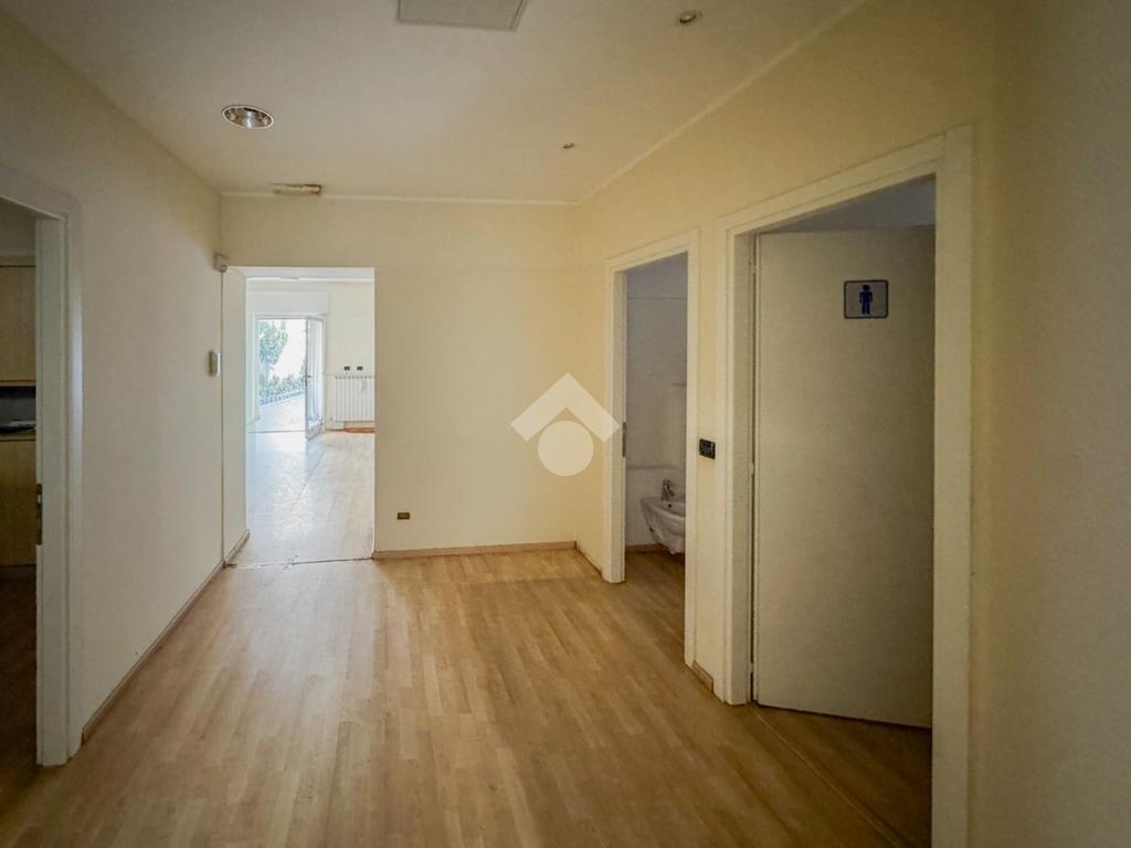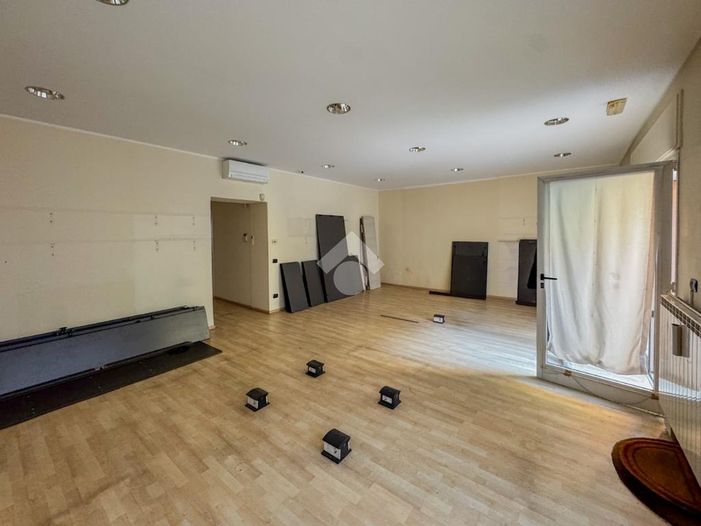 Il negozio misura circa 110 metri quadrati e ha un'altezza di 2,70 metri. La struttura è attualmente divisa in tre locali, dispone di due servizi igienici privati ed è caratterizzata da una pavimentazione in laminato. La soluzione è servita dall'impianto di riscaldamento e condizionamento, dall'impianto elettrico e quello di illuminazione. L'ambiente risulta ben illuminato grazie alla presenza di due ampie vetrine. L'immobile è munito del sistema di allarme e delle luci di emergenza. Inoltre, presenta saracinesca manuale ed è cablato.