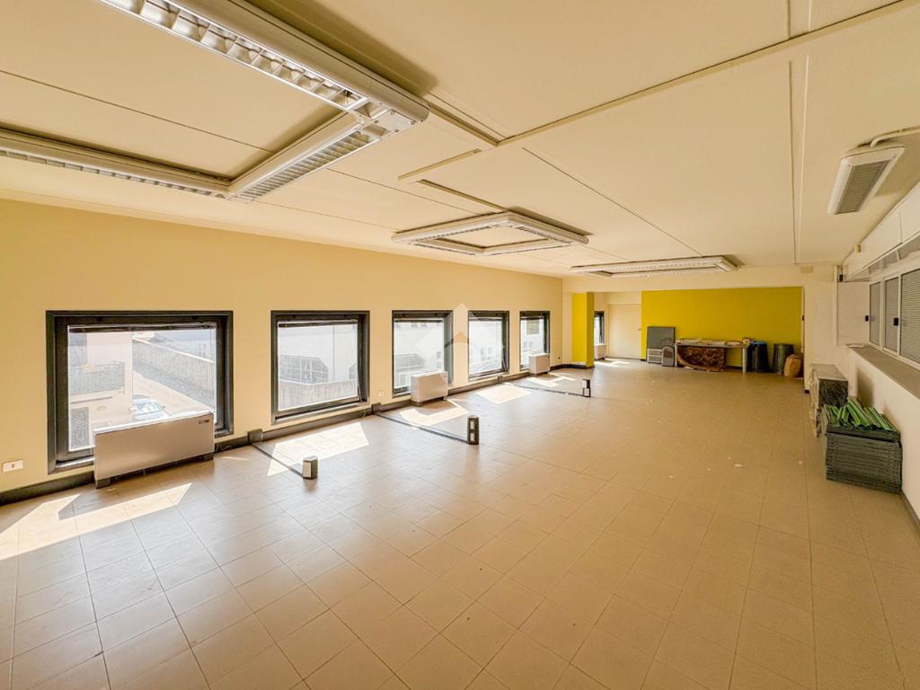 La soluzione ha una superficie che misura circa 180 metri quadrati disposta al piano primo, attualmente è suddiviso in un unico locale a cui si aggiungono due servizi igienici non a norma disabili. Il locale ha un'altezza di circa 2,70 metri ed è caratterizzato da una pavimentazione in piastrelle. L'immobile presenta l'impianto di riscaldamento e di condizionamento autonomi, l'impianto elettrico e di illuminazione. La struttura è cablata e dispone di internet a banda larga.