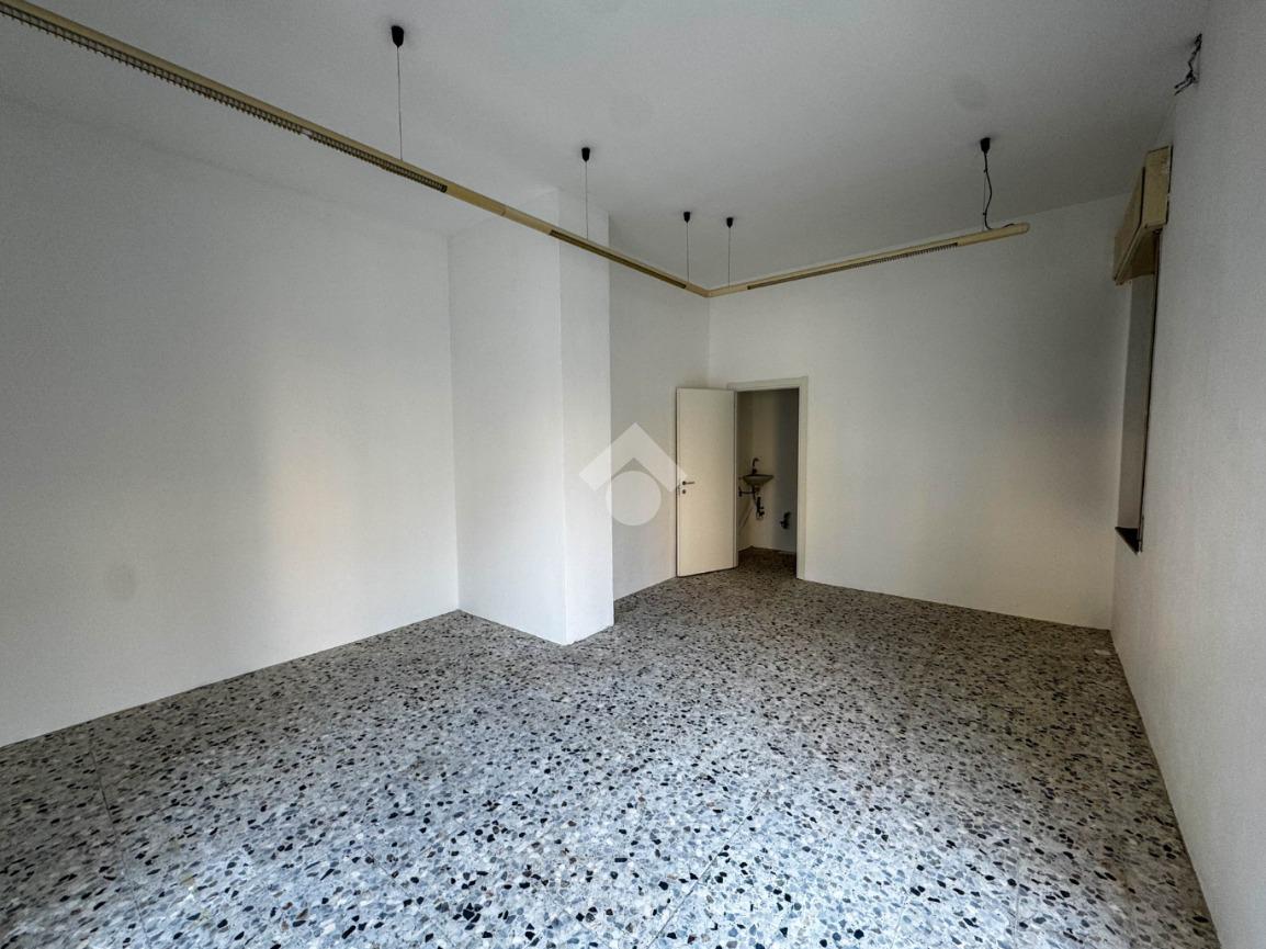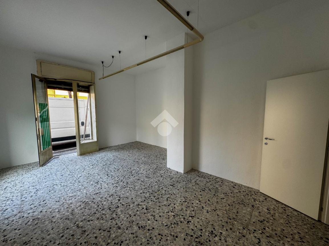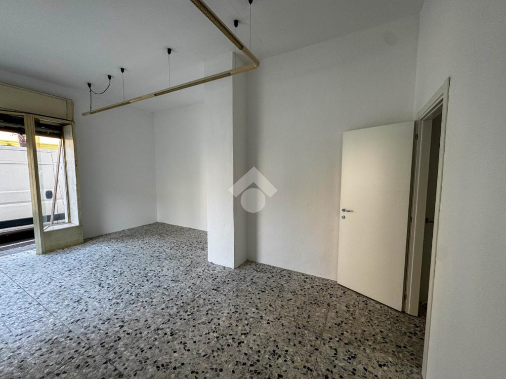 La soluzione misura circa 45 metri quadrati, attualmente si presenta come un unico locale e dispone di un servizio igienico non a norma disabili. La struttura ha un'altezza di circa 3,40 metri, risulta molto luminosa grazie alla presenza di due ampie vetrine ed è caratterizzata da una pavimentazione con piastrelle. L'immobile è cablato e presenta l'impianto elettrico e d'illuminazione. È presente la saracinesca manuale.