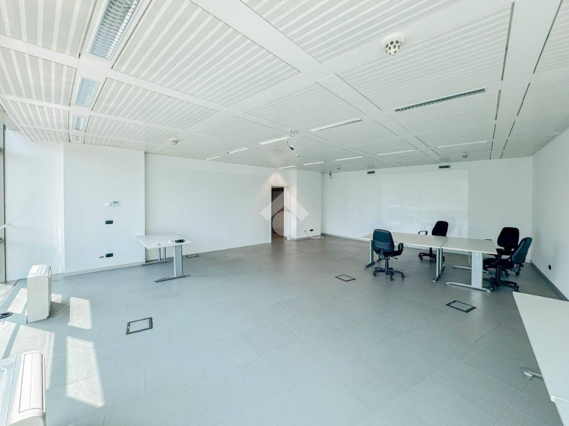 L’ufficio misura circa 160 metri quadrati, attualmente si suddivide in tre stanze e presenta un ripostiglio di circa 20 metri quadrati e un servizio igienico in comune, a norma disabili. La struttura ha un’altezza di circa 2,70 metri, è caratterizzato da una pavimentazione flottante e controsoffitto. L'immobile presenta l'impianto di riscaldamento e condizionamento, l’impianto elettrico e d'illuminazione e l'impianto d'allarme. La struttura, cablata, possiede le luci d’emergenza, internet a banda larga e ha la porta blindata.