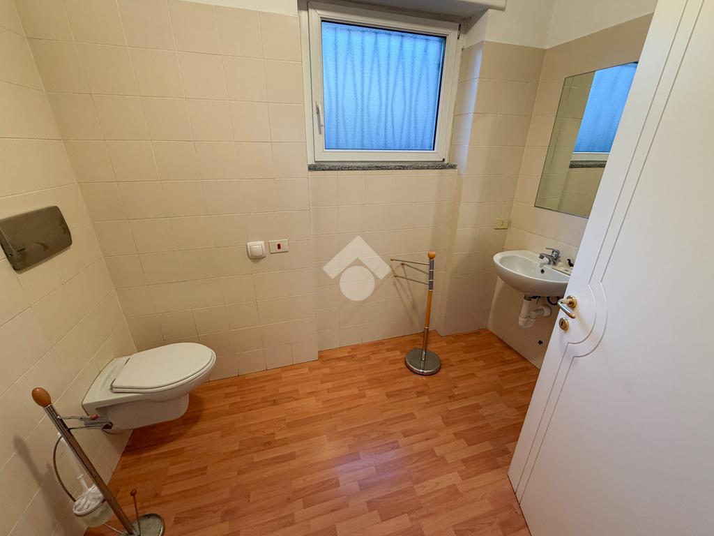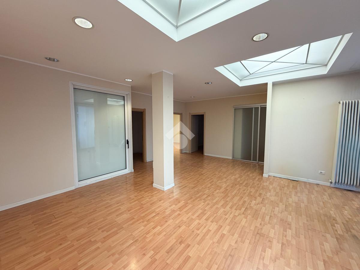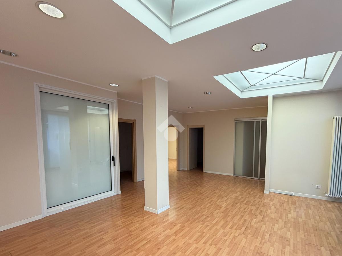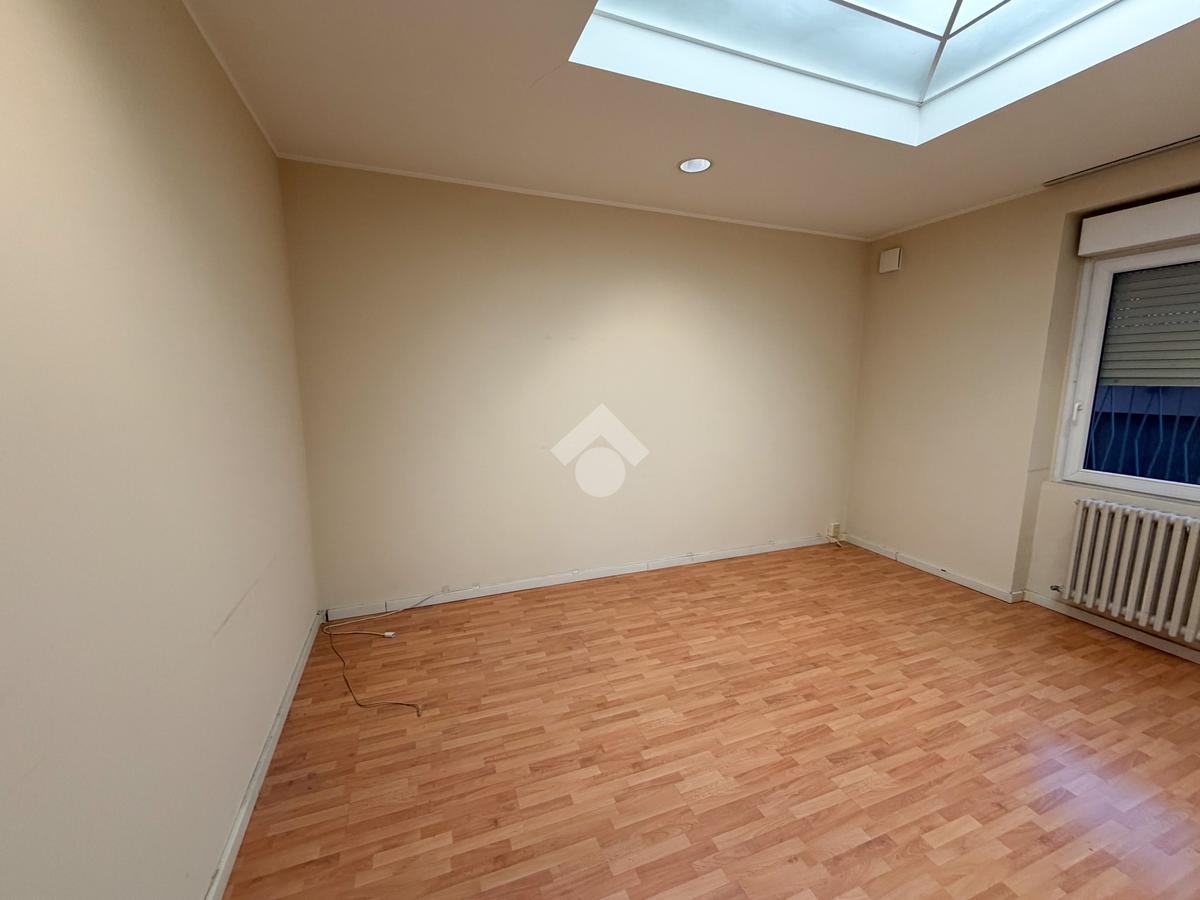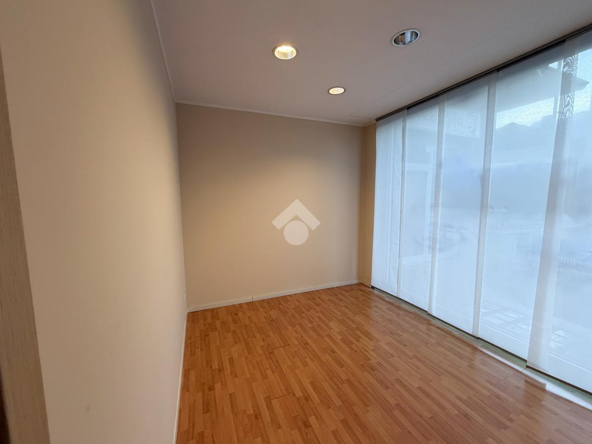 L'ufficio misura 160 metri quadrati e si suddivide in cinque locali. La soluzione è dotata di due servizi igienici privati ed è caratterizzata da una pavimentazione in parquet. L'ambiente risulta particolarmente luminoso grazie a quattro grandi vetrine. Il locale possiede l'impianto di riscaldamento, l'impianto elettrico e quello di illuminazione. L'immobile, completamente controsoffittato, è servito dall'impianto di allarme. Inoltre, è cablato e possiede connessione ad Internet a banda larga.