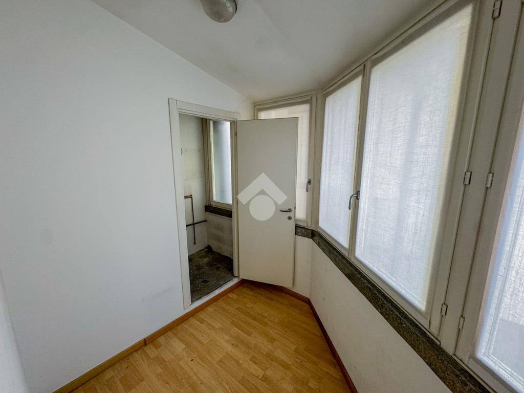 L'ufficio misura circa 135 metri quadrati e ha un'altezza di 2,70 metri. La struttura è attualmente divisa in quattro locali, dispone di due servizi igienici privati ed è caratterizzata da una pavimentazione in laminato. La soluzione è servita dall'impianto di riscaldamento e condizionamento, dall'impianto elettrico e quello di illuminazione. L'ambiente risulta ben illuminato grazie alla presenza di ampie finestre. L'immobile è munito del sistema di allarme e delle luci di emergenza. Inoltre, presenta la porta blindata, è cablato e possiede la connessione ad Internet.