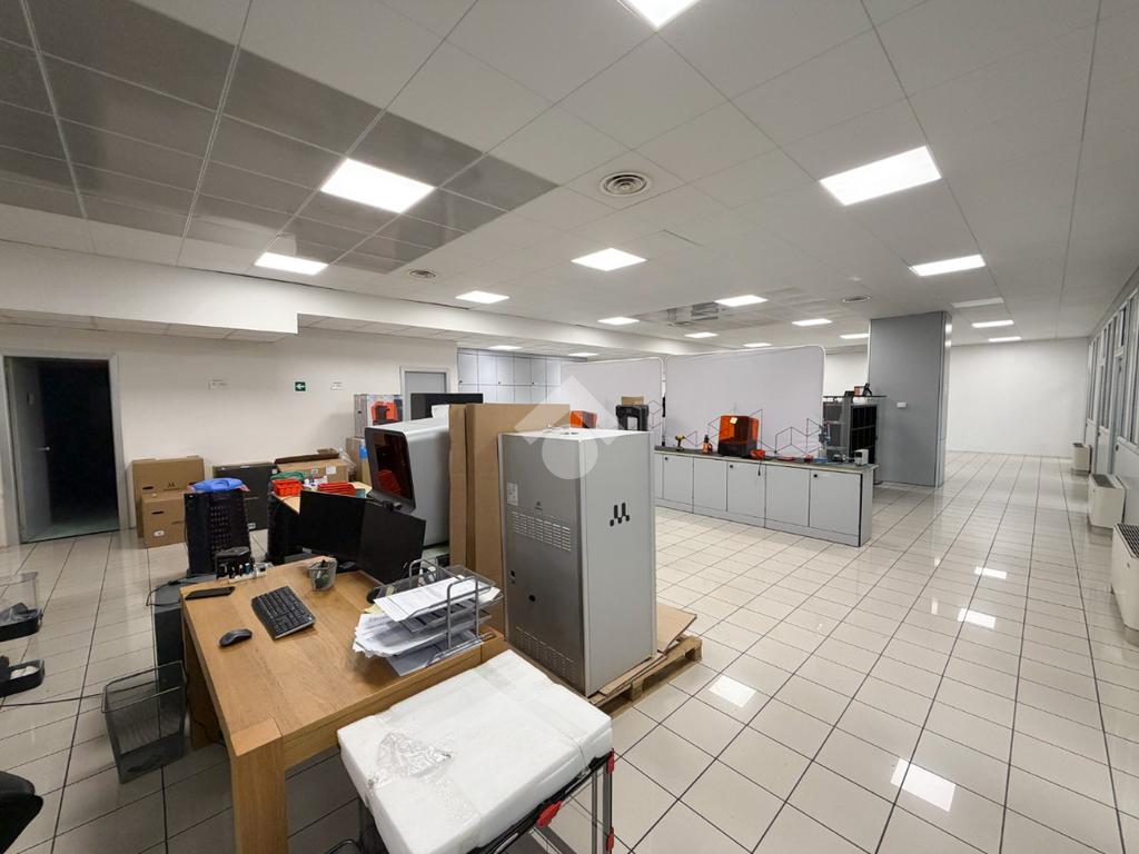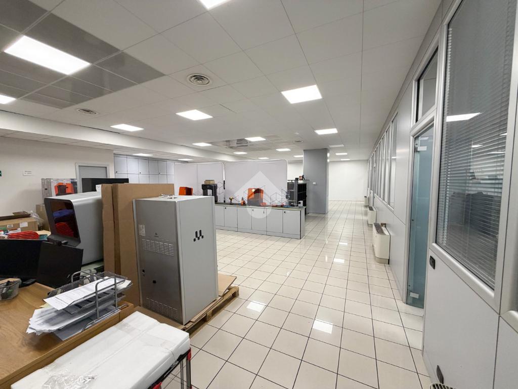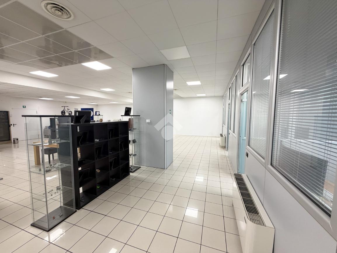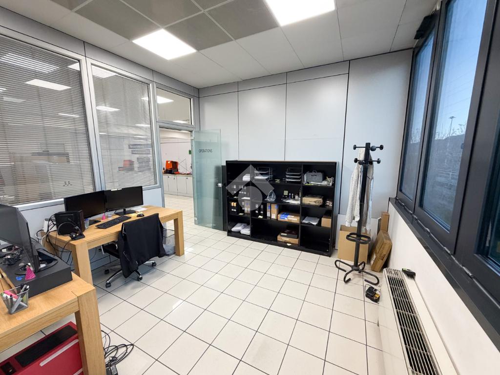 L'ufficio misura circa 400 metri quadrati e si trova al secondo piano di una struttura direzionale che si sviluppa su quattro livelli. La struttura è attualmente divisa in sei locali ed è dotata di sei servizi igienici a norma disabili. La soluzione è servita dall'impianto di riscaldamento e condizionamento, dall'impianto elettrico e quello di illuminazione. L'ambiente risulta ben illuminato grazie alla presenza di ampie finestre. L'immobile, controsoffittato, è munito del sistema di allarme e di sistema antincendio. Inoltre, presenta la porta blindata, è cablato e possiede la connessione ad Internet a banda larga. Dispone di ulteriori 110 metri quadrati adibiti a magazzino, con altezza pari a 3,70 metri. Il magazzino è accessibile tramite un portone alto 3,00 metri e largo 5,00 metri.