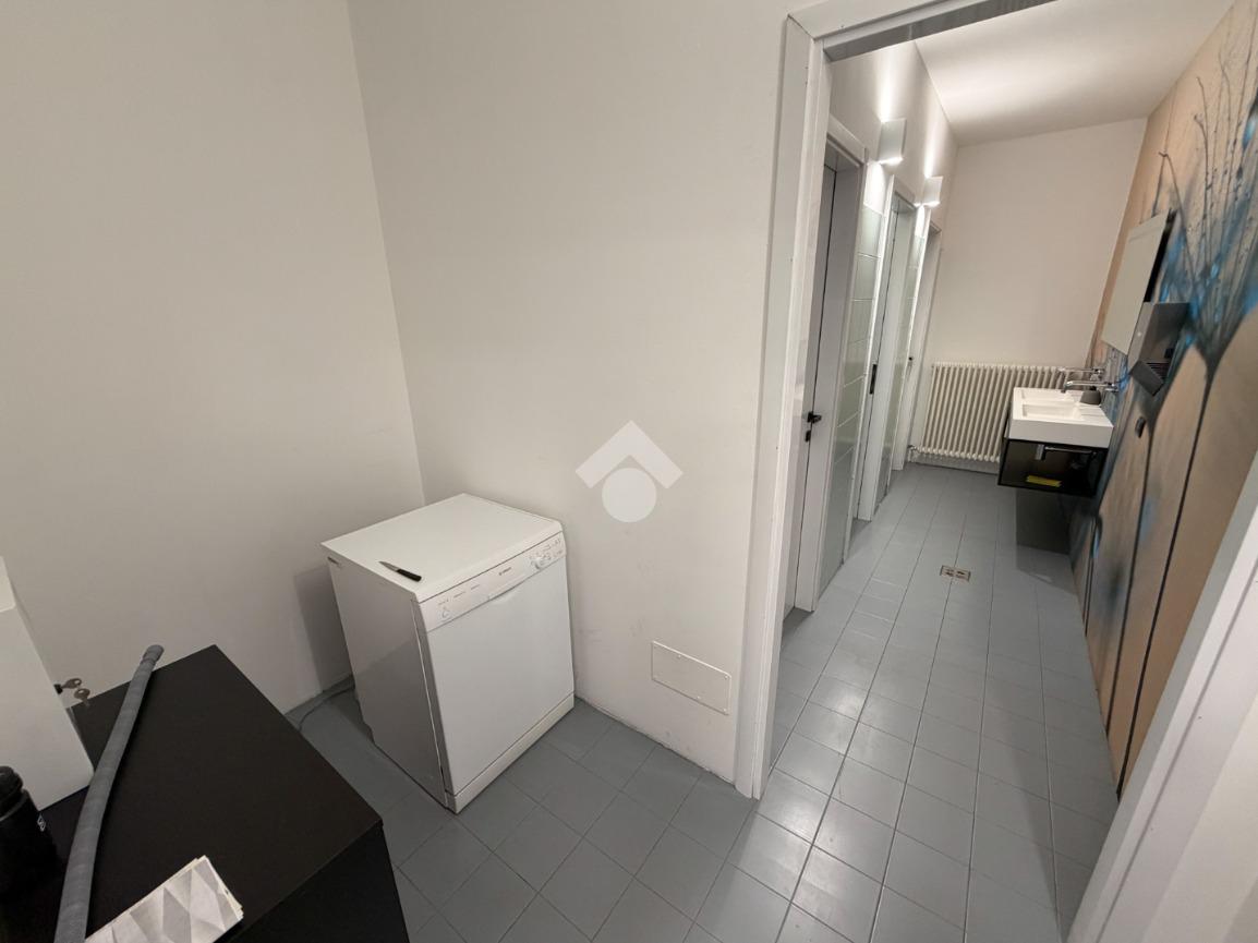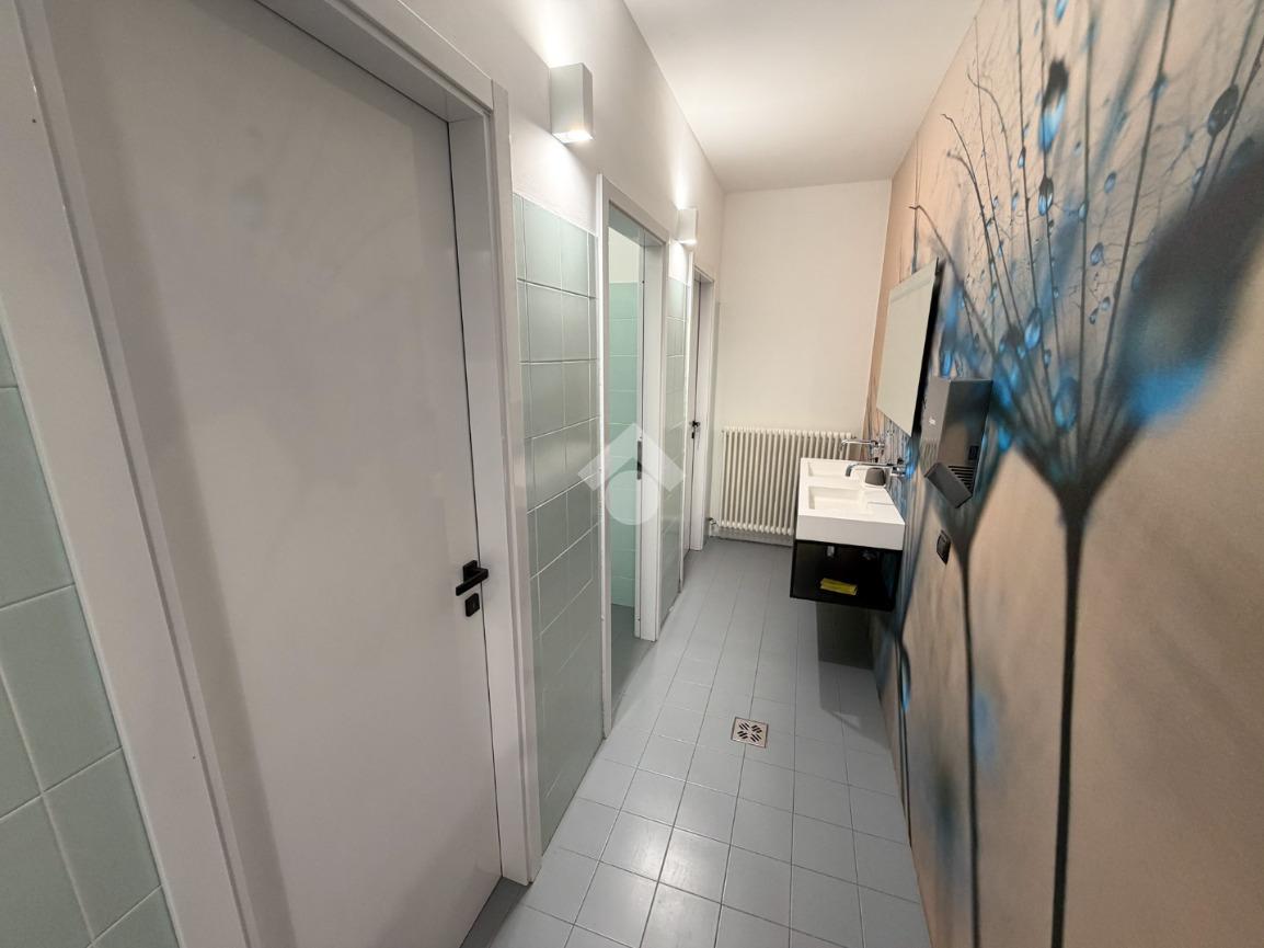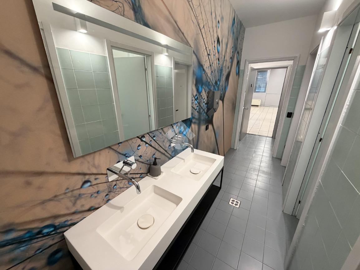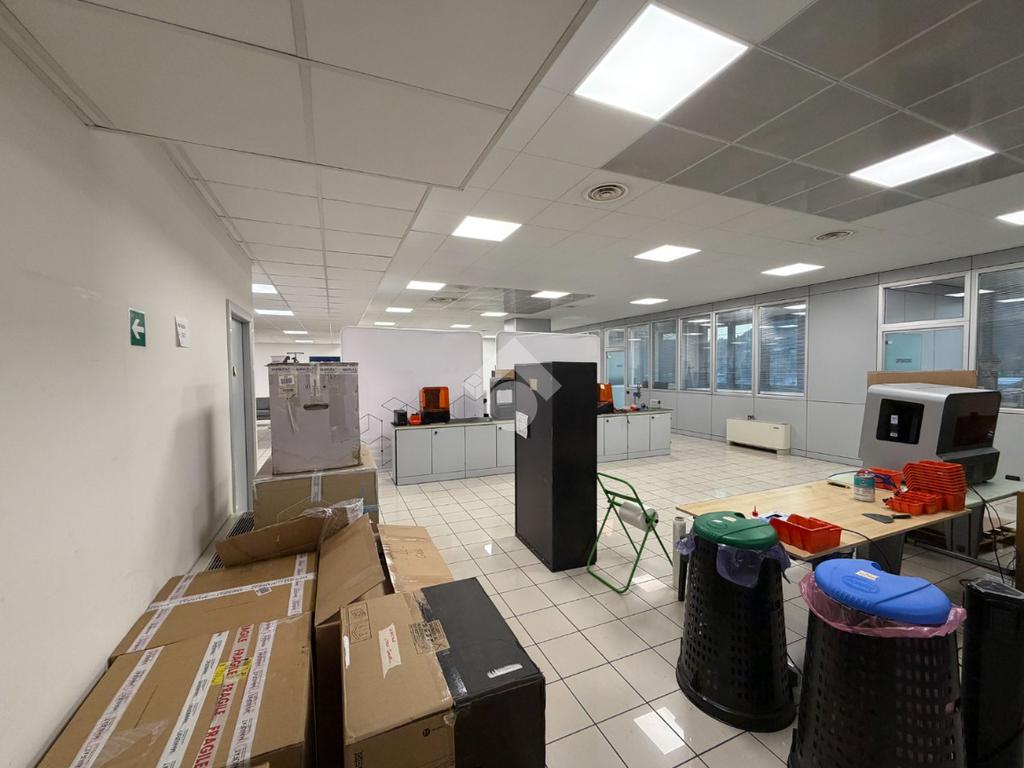 L'ufficio misura circa 400 metri quadrati e si trova al secondo piano di una struttura direzionale che si sviluppa su quattro livelli. La struttura è attualmente divisa in sei locali ed è dotata di sei servizi igienici a norma disabili. La soluzione è servita dall'impianto di riscaldamento e condizionamento, dall'impianto elettrico e quello di illuminazione. L'ambiente risulta ben illuminato grazie alla presenza di ampie finestre. L'immobile, controsoffittato, è munito del sistema di allarme e di sistema antincendio. Inoltre, presenta la porta blindata, è cablato e possiede la connessione ad Internet a banda larga. Dispone di ulteriori 110 metri quadrati adibiti a magazzino, con altezza pari a 3,70 metri. Il magazzino è accessibile tramite un portone alto 3,00 metri e largo 5,00 metri.
