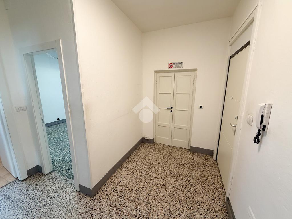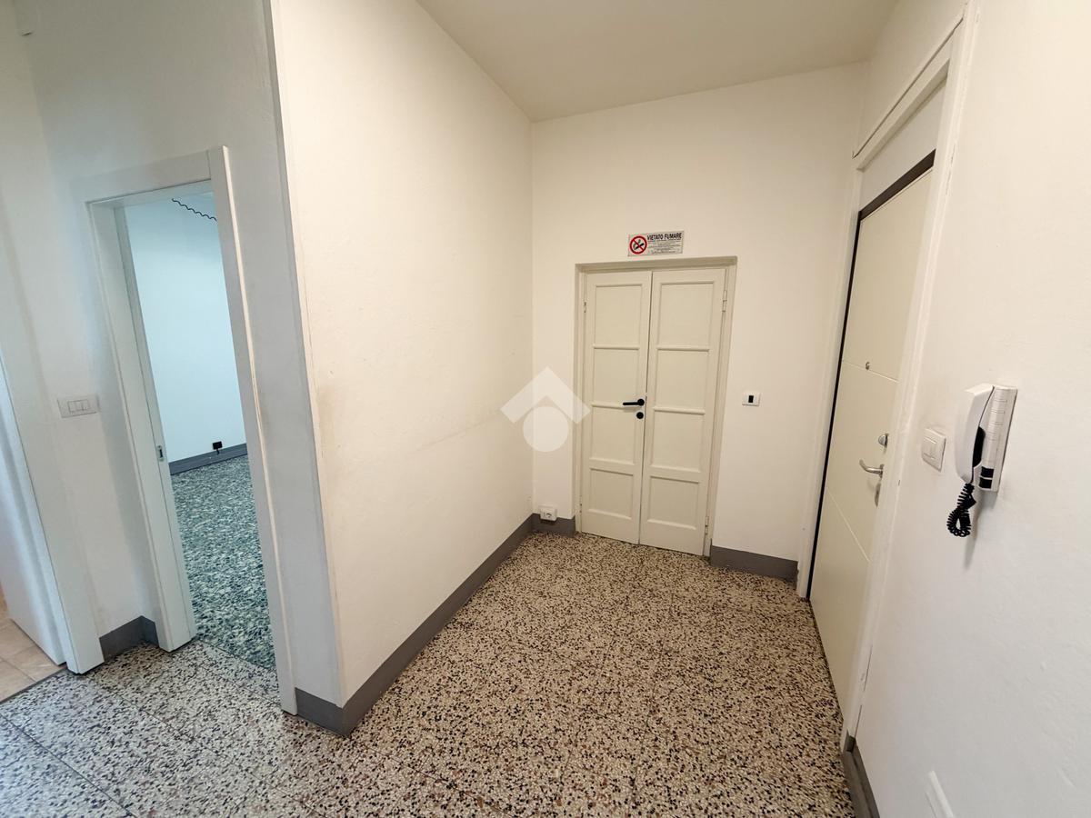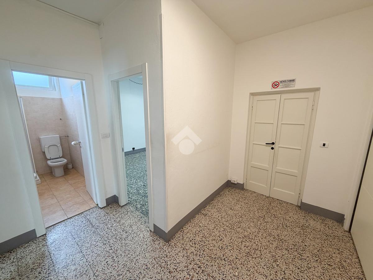 Proponiamo in locazione un ufficio con superficie complessiva di circa 80 metri quadrati disposti al piano primo di un edificio di tre livelli.