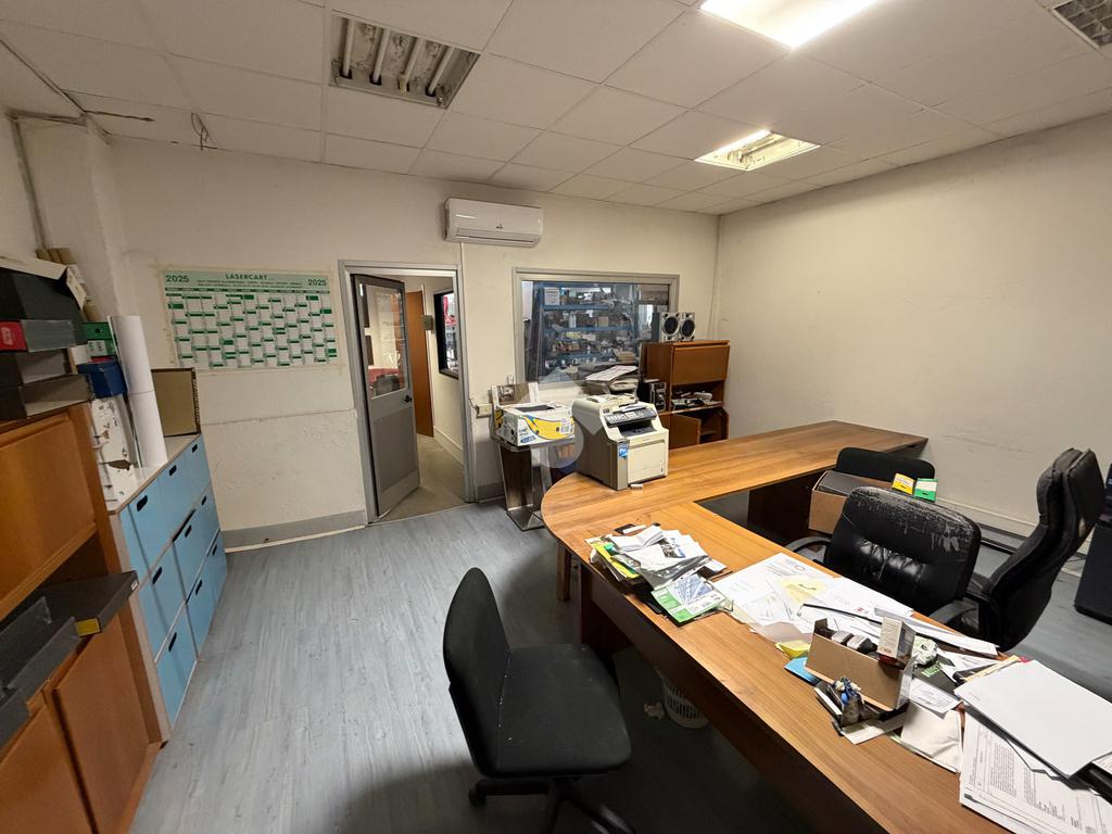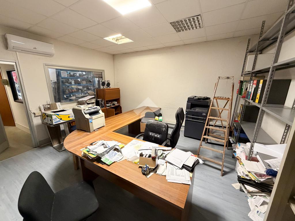 Il capannone misura 350 metri quadrati, ha un'altezza sottotrave pari a 4,60 metri ed è accessibile tramite un portone alto 4,00 metri. La struttura è dotata dell'impianto elettrico e dell'impianto di illuminazione. La soluzione è fornita dall'anello antincendio a idranti, dalla porta tagliafuoco e dalle luci di emergenza. L'immobile è completo degli spogliatoi con servizi igienici e docce e del locale mensa. Gli uffici si sviluppano al piano terra per 30 metri quadrati. La proprietà è interamente recintata e possiede ulteriori 150 metri quadrati di area esterna esclusiva, alla quale si accede tramite un cancello con larghezza pari a 7,00 metri.