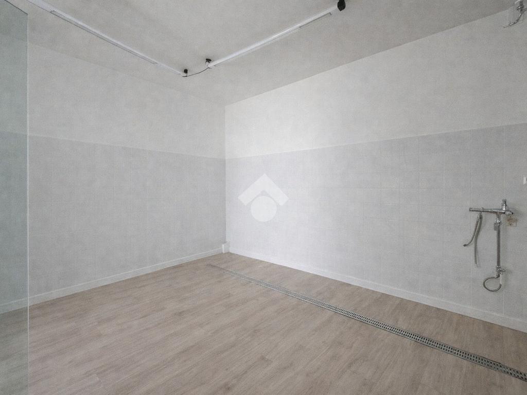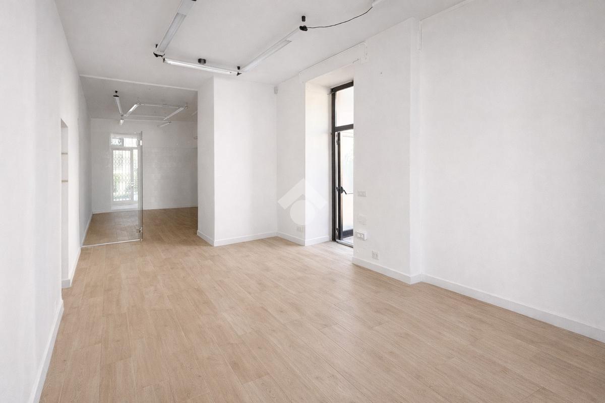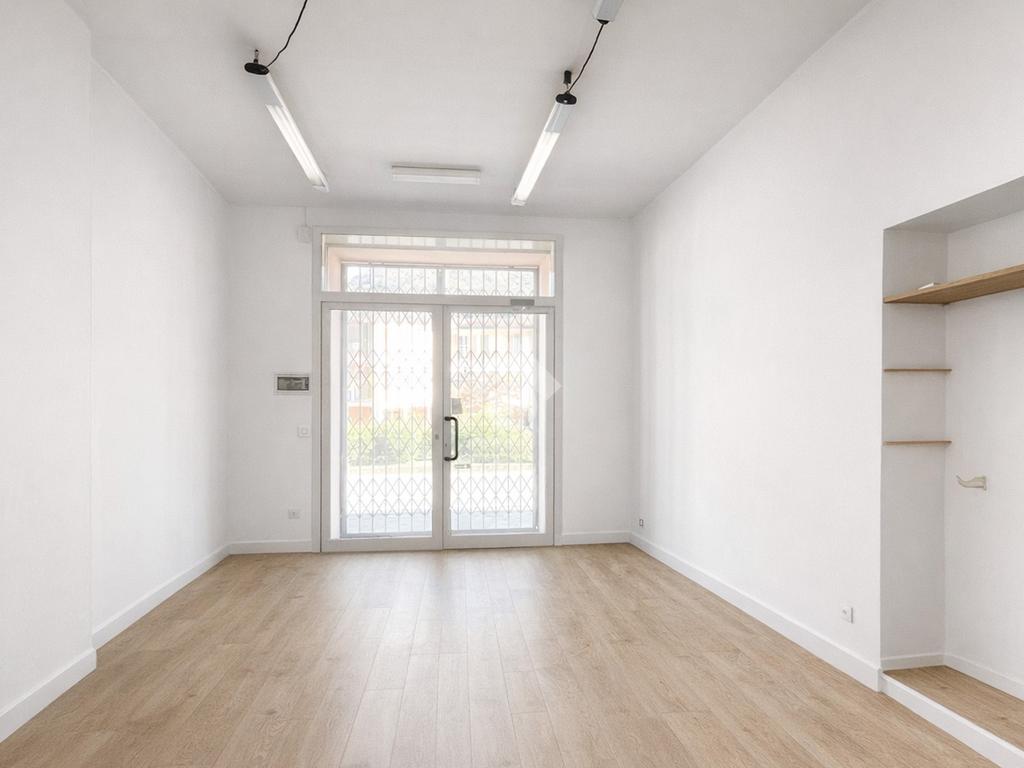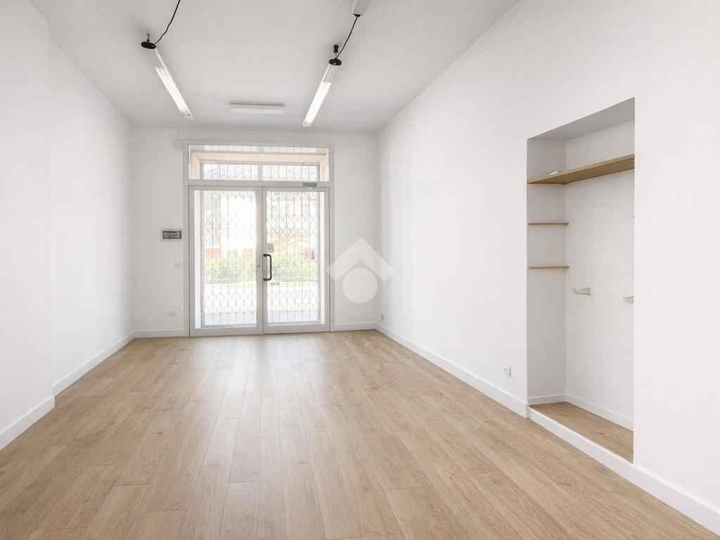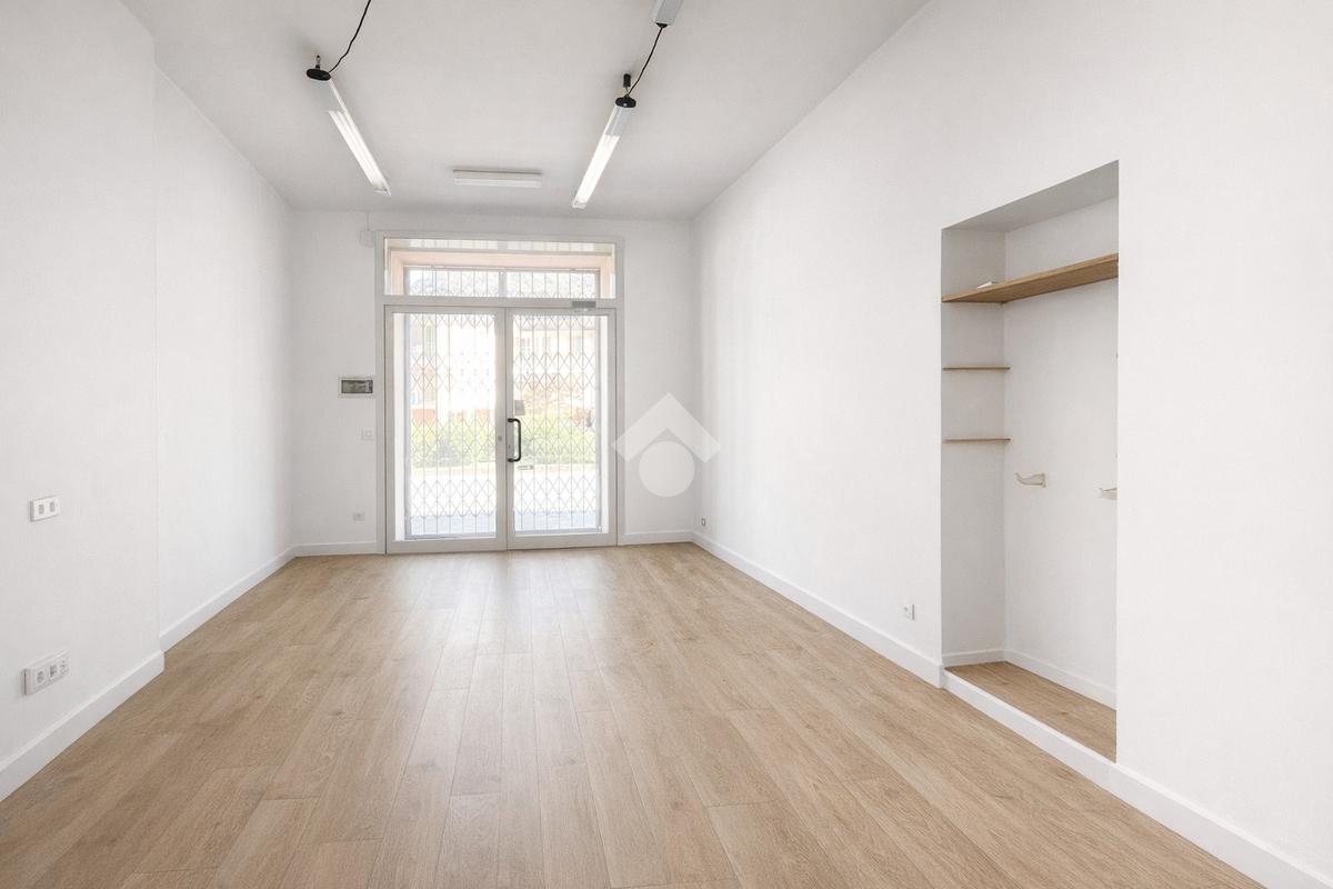 Il negozio misura 60 metri quadrati ed è situato al piano terra di una palazzina che si sviluppa su due livelli. La soluzione è attualmente divisa in due locali ed è dotata di un servizio igienico privato. L'ambiente risulta particolarmente luminoso grazie alla presenza di una grande vetrina. Il locale possiede l'impianto di riscaldamento autonomo, l'impianto elettrico e quello di illuminazione. Inoltre, è cablato.