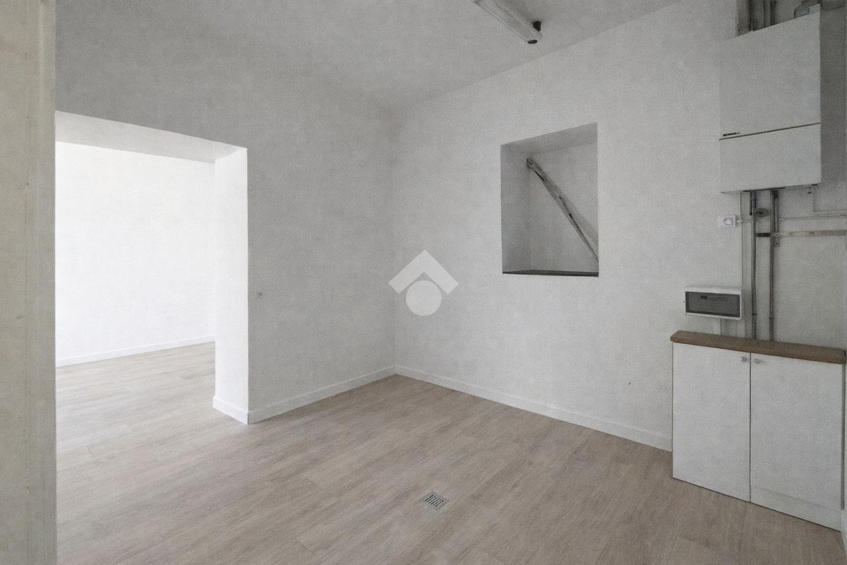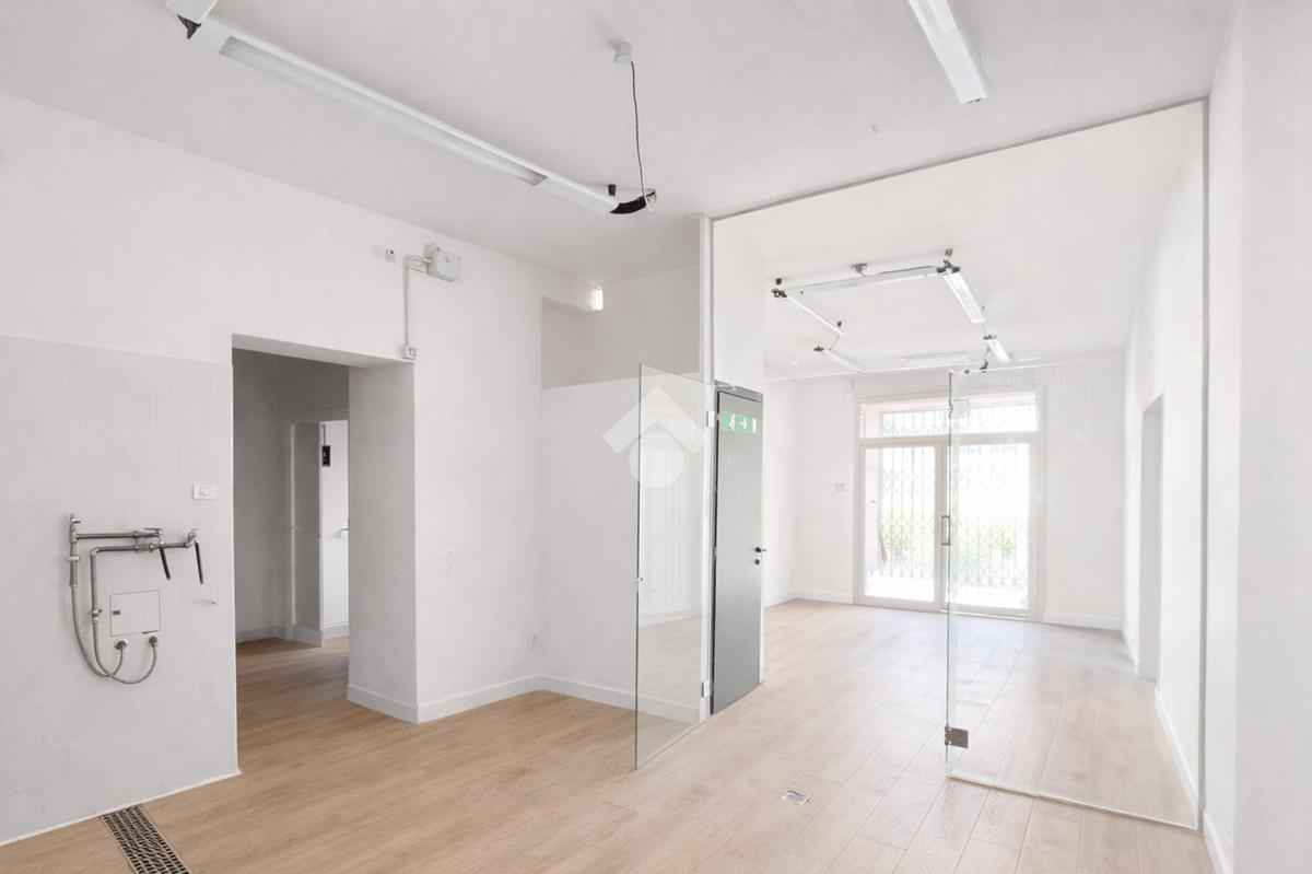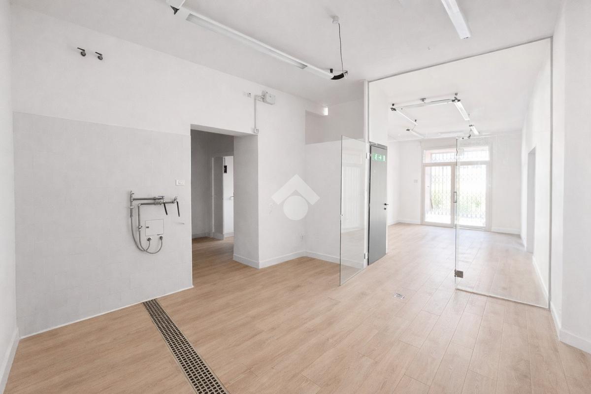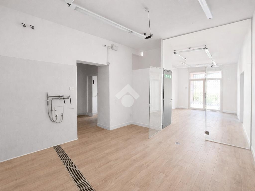 Il negozio misura 60 metri quadrati ed è situato al piano terra di una palazzina che si sviluppa su due livelli. La soluzione è attualmente divisa in due locali ed è dotata di un servizio igienico privato. L'ambiente risulta particolarmente luminoso grazie alla presenza di una grande vetrina. Il locale possiede l'impianto di riscaldamento autonomo, l'impianto elettrico e quello di illuminazione. Inoltre, è cablato.